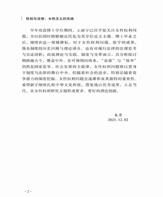 王新宇,新葡萄官网amg教授,法学博士,哲学博士后,美国埃莫瑞大学访问学者,2019年获聘导师资格。多年来一直从事法理学、近代婚姻法、性别与法律研究。现已出版专著《民国时期婚姻法近代化研究》《性别平等与社会公正——一种能力方法的诠释与解读》《法观念现代化与女性权益保护——以<反家庭暴力法>为中心》、出版译著《虚幻的平等:离婚法改革的修辞与现实》《正义、社会性别与家庭》,发表论文30余篇,承担国家社科基金、司法部、中国法学会、其他国家机关以及新葡萄官网amg校内课题等多个科研项目。作者长期致力于性别与法律研究,已经取得了良好的研究成果、获得了学界和社会的深度认可。