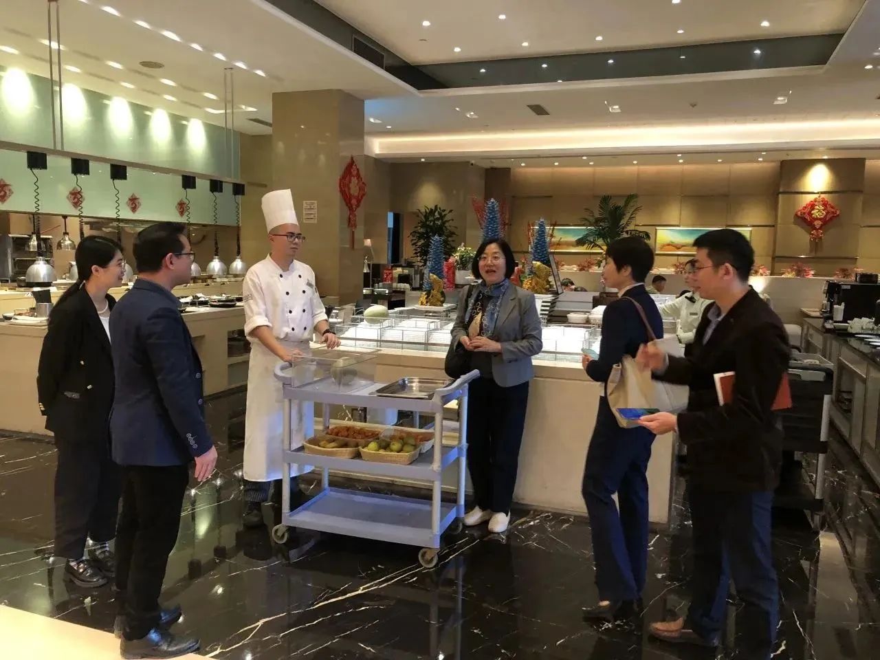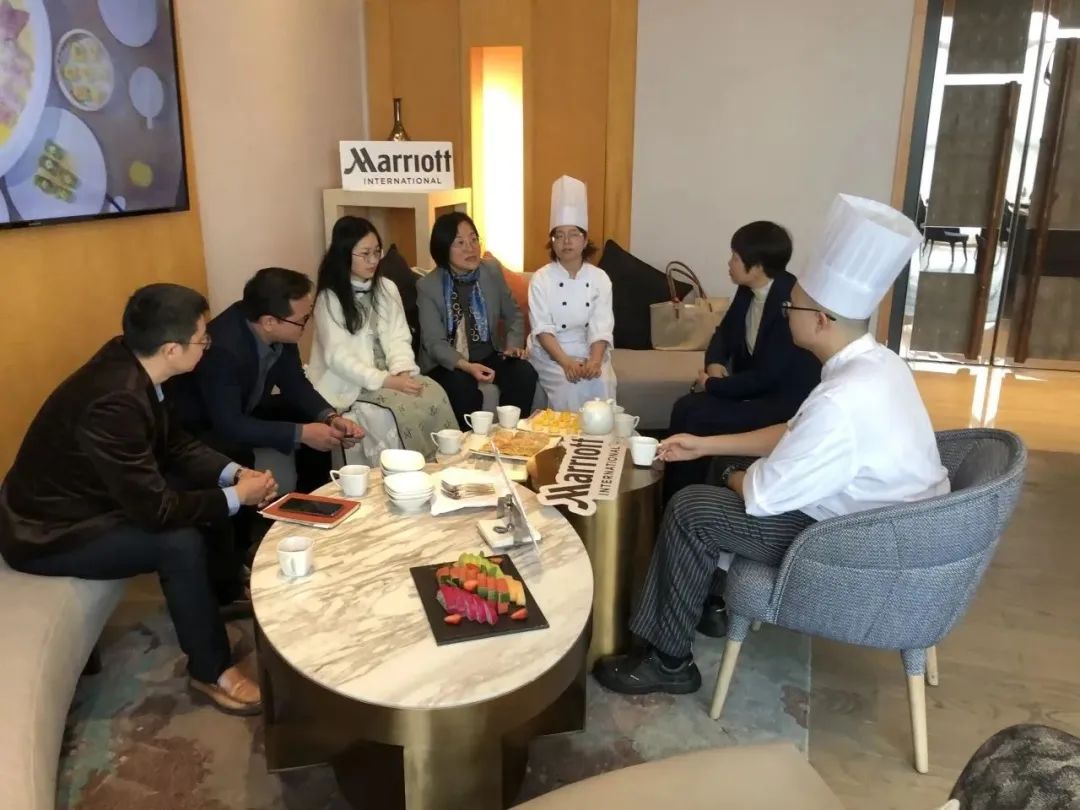 林红梅院长一行参观了广州东圃合景福朋喜来登酒店,详细了解了该企业生产经营、人才需求等情况,并与酒店总经理韩科以及人力资源部、餐饮部、西厨、中厨等部门负责人进行了面对面交流。韩总对我院实习生们的实习表现非常认可,对实习生的工作能力、职业素养评价较高,并结合企业的岗位需求对学院的人才培养提出了宝贵的建议。