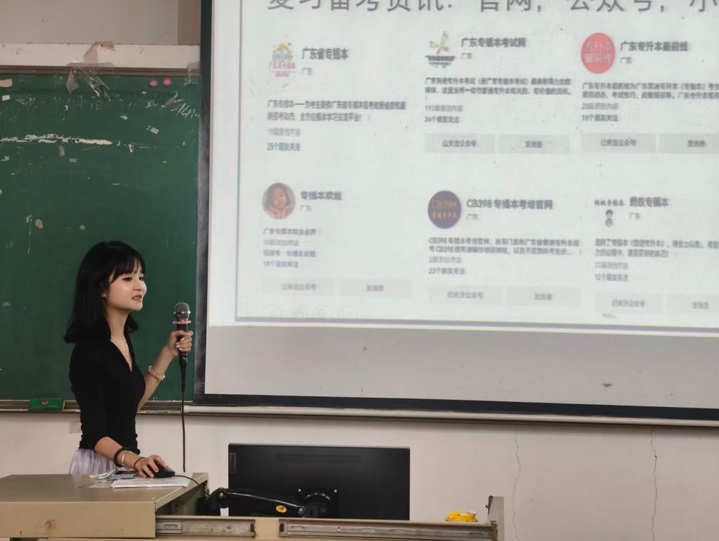 接着宣讲人胡嘉健他明确专升本的核心价值是提升学历、铺垫后续发展,建议目标坚定不跟风,考试科目为3门公共课+1门专业课。备考按“寒假定专业—2月强化—3月报名—考前冲刺”推进,科目学习依托对应网课+笔记梳理,阶段上分基础、强化、冲刺稳步落实。他强调“效率优先”,采用地毯式背诵、固定资料,同时提醒调节压力、重视健康,将专升本视为持久战,以好心态坚持到底。