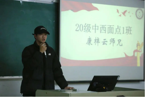 本次宣讲会有幸邀请到18级中西面点1班肖潮轩师兄、20级中西面点1班康梓云同学为大家分享自己的就业和创业经历。