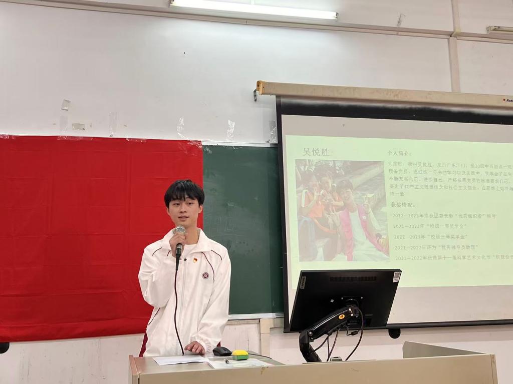 2020年9月,吴悦胜怀着对烹饪艺术的热爱踏入华商职业学院。在大学这个人生成长的关键阶段,他第一时间向党组织递交入党申请书,系统学习党的理论知识,积极参加党课培训。经过三年的培养和锻炼,他于2023年光荣加入中国共产党,完成了从青涩学子到有信仰、有理想的新时代青年的蜕变。