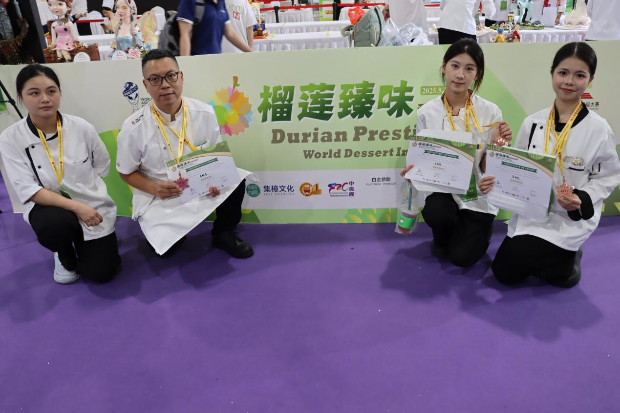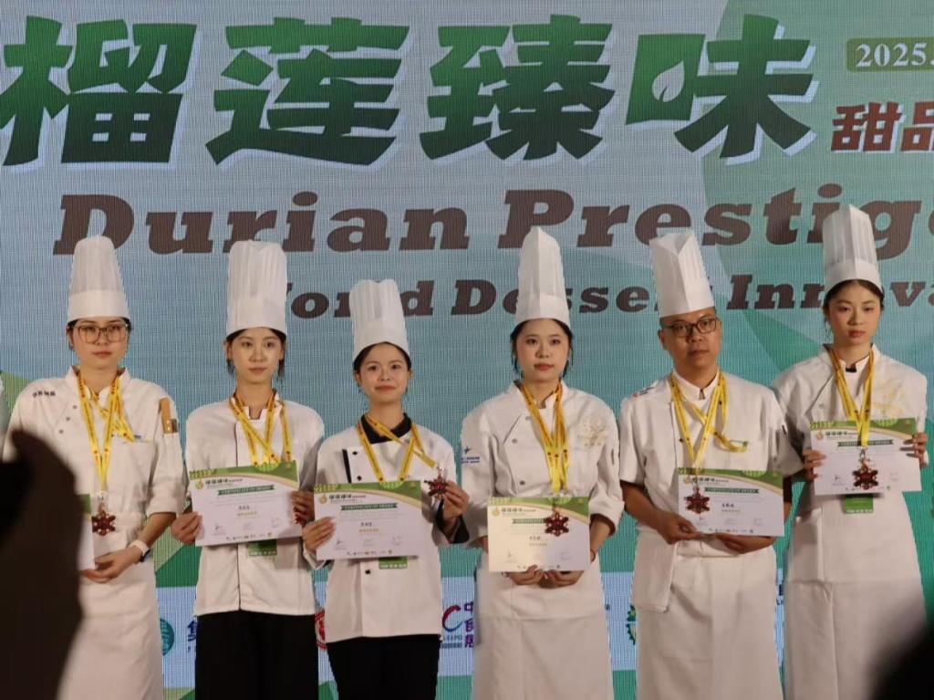 本次大赛由集檍文化与亚青赛组委会联合主办,中国烹饪协会、中国进出口食品展协办,并获世界厨师联合会权威认证,是亚洲烘焙领域极具影响力的专业赛事。大赛设置多个组别,既包含糕点艺术展示、经典果蔬雕刻个人赛,也聚焦“榴莲”特色食材的创新应用,专门开设“榴莲臻味”甜品挑战赛,为我院师生搭建了对接行业高水平竞技、开展交流学习的优质平台。