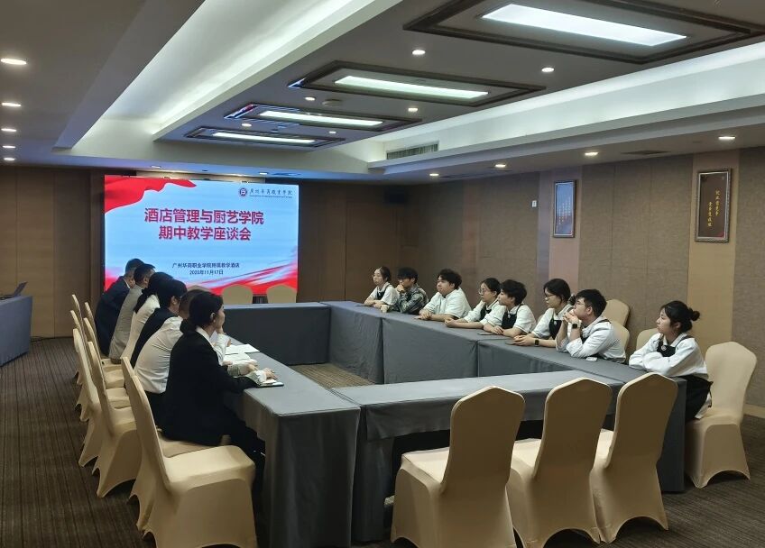 2025年11月17日,SUNBET申搏官网附属教学酒店——广州太阳城大酒店组织召开了“24烹饪2班期中座谈会”。会议由SUNBET申搏官网副院长谢锦权主持,酒店管理层、教师代表及学生代表共同参与,围绕实训教学、课程优化、场地设施等方面展开深入交流,进一步推动产教融合走实走深。