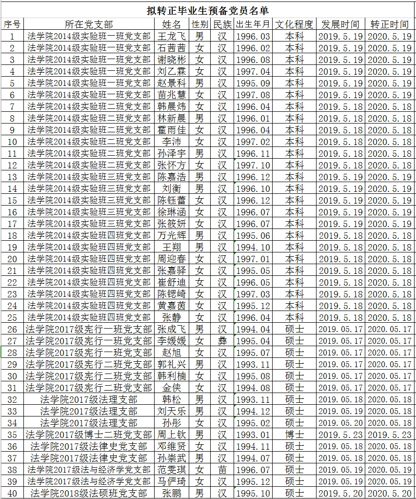 根据《中国共产党章程》和《中国共产党发展党员工作细则》,在听取党员、群众意见基础上,经党支部的培养教育和考察,支部委员会审查,拟将刘乙霖等40名同志转为中共正式党员,并于近期召开支部大会讨论其转正问题,现予以公示。