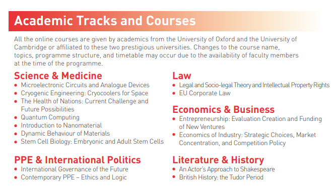 u 牛剑专业课程自主选——来自牛津剑桥两所顶级大学的专业教师采用在线形式授课,可从文理各专业选1-6门课,每门课3个欧洲学分ECTS(或1.5个美国学分USCredits);