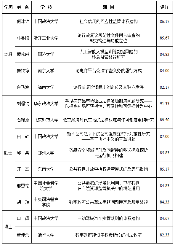 截至2025年4月20日24:00,第六期行政法莘学子成长培养计划共收到来自清华大学、南京大学、同济大学、东南大学、北京师范大学、新葡萄官网amg、中国社会科学院大学、华东政法大学、郑州大学、海南大学等全国50所高校的申报书共89份。其中,本科生32份,硕士生43份,博士生14份。