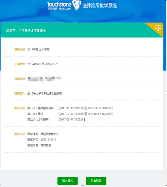 7、如果该生的报名信息“审核通过”且该课程不需要面试,登录后则显示以下页面。
