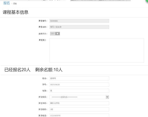 报名课程信息、基本信息的完善