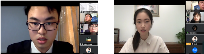 随后,参加模拟答辩的9名同学开始进行答辩。首先每位选手对自己的参赛论文进行陈述;再由两位答辩老师针对学生的论文进行提问,并给出指导意见和建议。