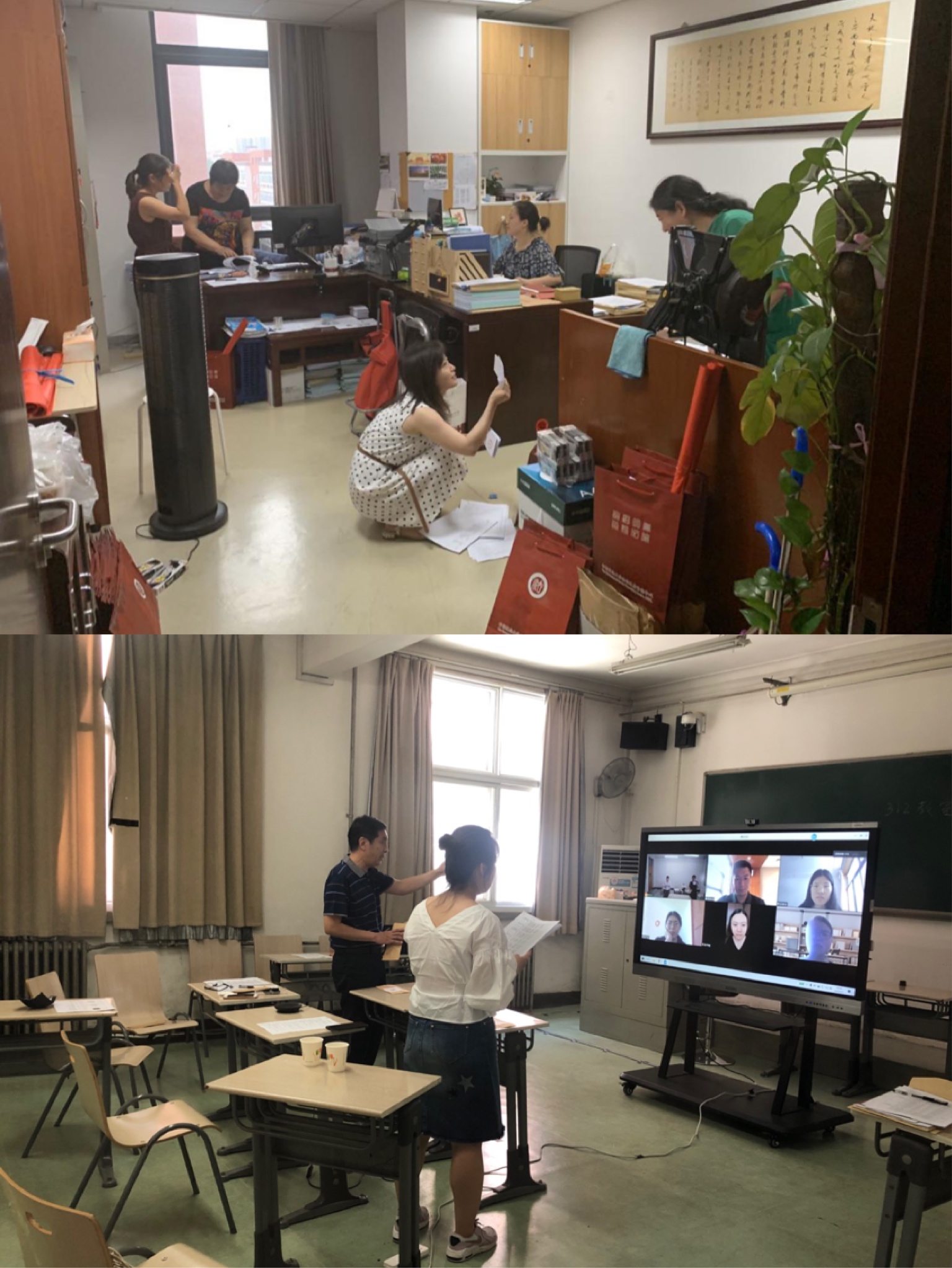 自6月15日开始的博士复试面试期间北京市疫情形势加重,面对新情况研工办及时完善工作方案,为无法到场参加复试的导师也进行远程服务。每位复试秘书老师兼顾做好联络考生、叮嘱答辩程序、记录答辩关键内容等工作,研工办陈维厚主任全程参与保证答辩复试正常开展。6月16日校党委书记胡明,党委副书记、校长马怀德,党委副书记、副校长常保国还到复试现场进行了督查,为我院参加复试工作的老师送来慰问。