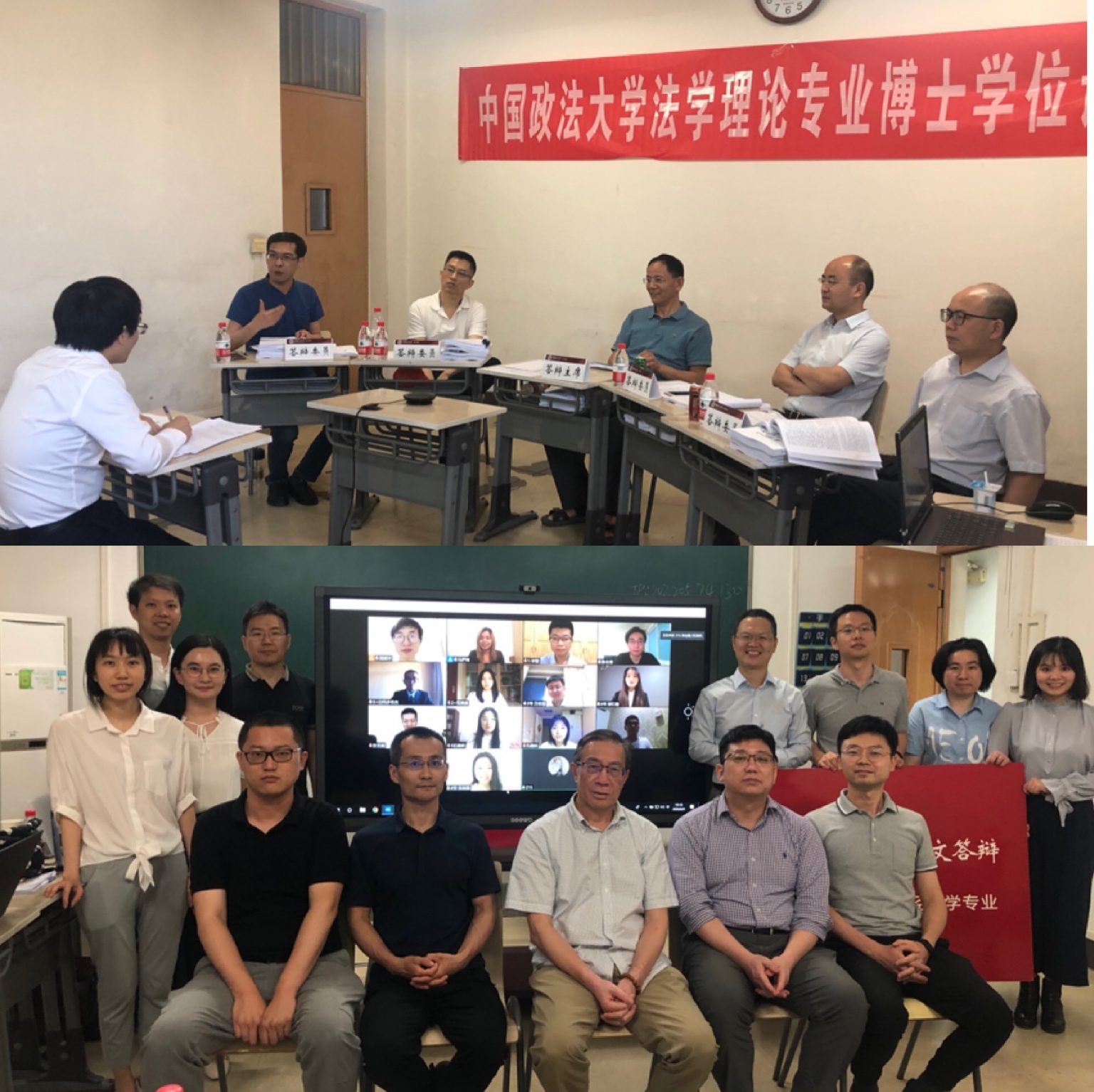每场答辩前联络记录员、网络测试、序号抽签,每个答辩及复试会场配备专门秘书老师通知学生、跟进程序,每组答辩及复试结束后拍摄师生合影留念、回收材料、录入结果……为了确保每位同学答辩及复试的结果公正、合规,新葡萄官网amg争取将每个环节做得细致周到,帮助学生理清线上答辩程序、确保答辩正当合规,同时随时待命应对紧急情况。