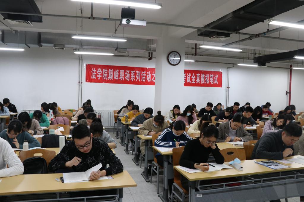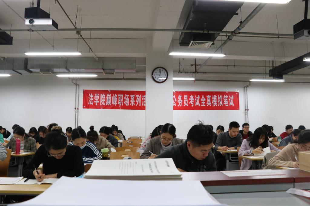(法研通讯社 图/官瑞珍 文/王婧蓉)为了帮助同学们进一步评估当前复习水准,熟悉考试流程,体验考试氛围,考前查漏补缺,11月8日,由新葡萄官网amg主办、新葡萄官网amg研究生会承办、中公教育协办的“巅峰职场”系列活动之国家公务员考试全真模拟笔试,在我校学院路校区科地202教室顺利举行。