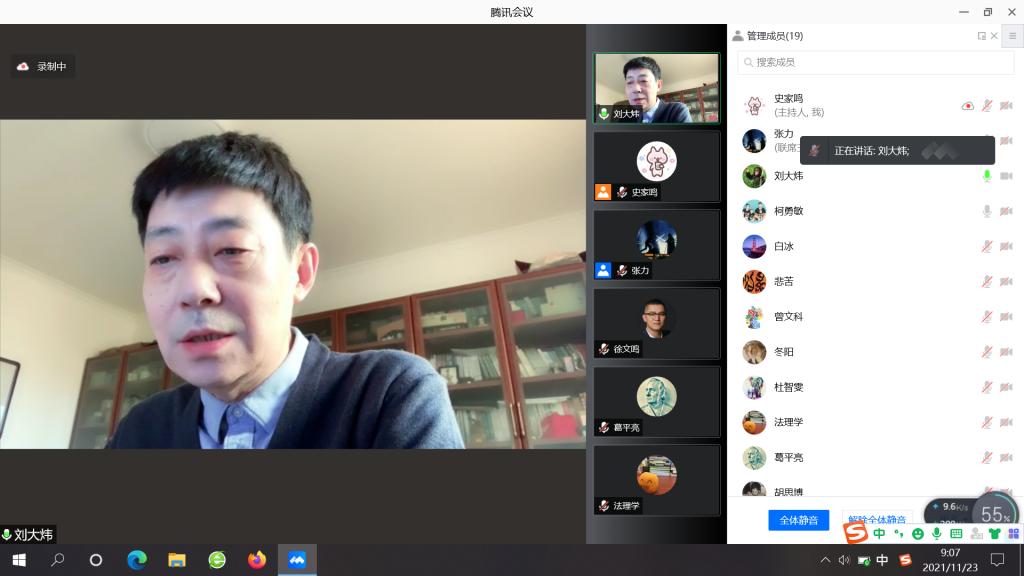 2021年11月23日,由新葡萄官网amg举办的“深入贯彻习近平法治思想,持续深化卓越法治人才教育培养”研讨会以腾讯会议的方式成功进行。