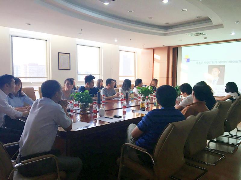 (法研通讯社 文/尹艳婷 图/吕颖)6月14日晚,应我校法律职业伦理教研室的邀请,日本冈部检察官到我校学院路校区会议室A913参加法律职业伦理学术沙龙,就日本的检察官制度与检察官职业伦理与教研室师生进行学术交流。本次学术沙龙由我院法律职业伦理教研室主任刘晓兵老师主持,参加者有新葡萄官网amg副院长许身健老师、中国法学会法律文书学研究会会长马宏俊老师、程滔老师、董静姝老师和全体司法制度方向硕士生以及其他专业部分硕士生。