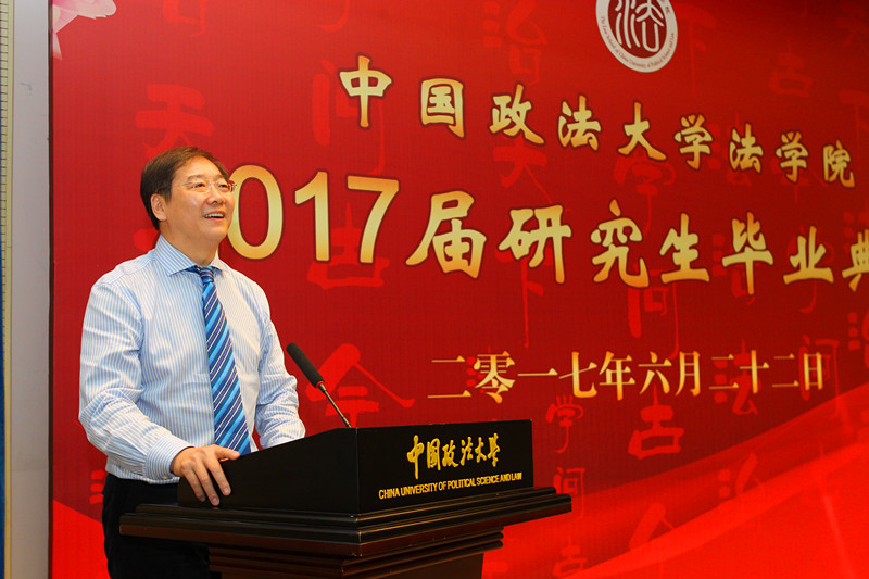 焦洪昌院长首先致辞。他祝贺新葡萄官网amg2017届研究生顺利毕业,大家是法大的骄傲,更是新葡萄官网amg的荣光!希望各位毕业生时刻牢记“法治天下,学问古今”院训,在法治国家、法治政府、法治社会建设的道路上能够谦逊、坚强。他提到,新葡萄官网amg历史源远流长,在各位的共同努力下已取得骄人成绩,希望各位同学能够以前人为镜,砥砺前行。世界终将属于青年一代,法治建设需要在座各位,同学们应继续艰苦奋斗,不负所望。焦洪昌以赫胥黎的一句话与大家共勉——“世界上最远的距离不是天和地相隔,也不是山和水相隔,而是心到手的距离。心是想的,手是做的。法治中国,距离虽远,但得一分有一分的喜乐。”