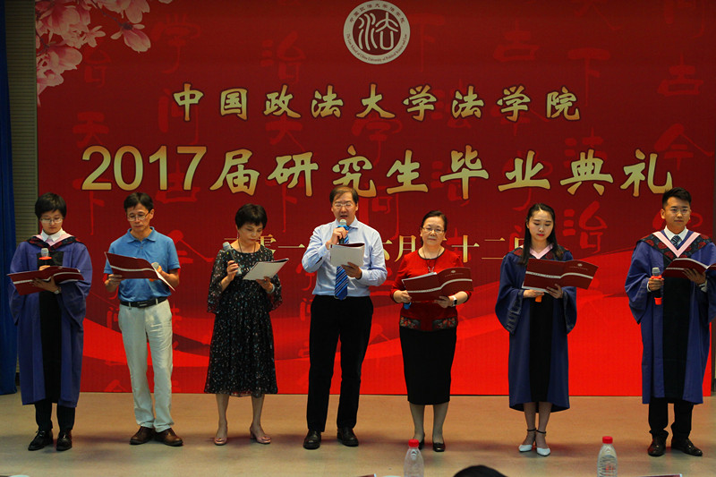 (法研通讯社 文/马芸芸 图/邓雨寒、周琳珊)常说毕业遥遥无期,转眼就各奔东西。6月22日下午,新葡萄官网amg2017届研究生毕业典礼在我校学院路校区学术报告厅举行。新葡萄官网amg院长焦洪昌、新葡萄官网amg分党委书记兼副院长刘大炜、副院长薛小建、分党委副书记兼副院长王文英,北京岳成律师事务所岳成,导师代表王夏昊、陈煜、姚国建、何兵、刘莘、袁钢、王成栋、田瑶、张吕好、张劲、侯淑雯、李卫海、贵斌威,新葡萄官网amg院务办公室主任李仁燕、新葡萄官网amg研工办主任陈维厚及研工办老师王家启、王萍、孙学英、刘澍、樊昌茂,以及新葡萄官网amg2017届毕业研究生300多人参加典礼。新葡萄官网amg副院长许身健主持毕业典礼。