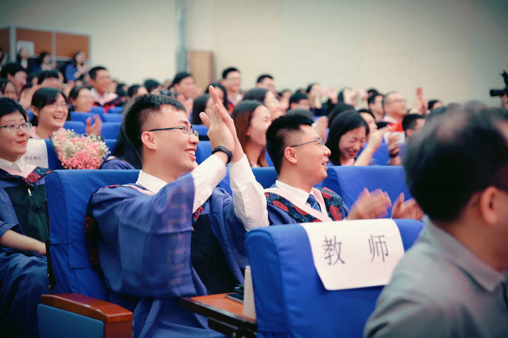 毕业典礼师生互动特别环节,李仁燕、刘澍、田瑶、张劲等四位老师为毕业生送上歌曲《送别》,依依不舍之情渲染全场。焦洪昌、刘莘、张吕好、侯淑雯老师及学生代表杜佳虹、何美琳、王敬存带来的配乐诗朗诵。字字句句,回顾着研究生生活的美好时光,抒发学子们对母校的深深眷恋与感恩;声声念念,传达着新葡萄官网amg老师的谆谆教诲,歌颂母校对毕业生的殷殷期望与祝福。焦院长饱含深情的朗诵道:“今天我们相拥微笑,我们大声放歌,让我们共同唱响——《同一首歌》”,音乐声起,刘大炜、许身健、薛小建、王文英、陈维厚等老师与全体毕业生们一齐高唱,现场气氛达到高潮。