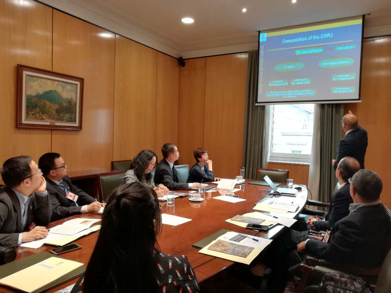 20日代表团在Ramon Bonell教授陪同下访问了西班牙司法权力委员会。司法权力委员会国际关系部主任Pedro Benito高级法官接待了新葡萄官网amg代表团并做了关于司法权力委员会的专门报告,详细介绍了司法权力委员会的组织、权限、相关制度以及其在确保和维护司法独立方面的作用。