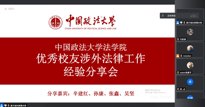 (法研通讯社 图/文 许新靖)5月21日,新葡萄官网amg“七秩芳华 情怀家国”涉外法律工作经验分享会以腾讯会议的形式在线上举办。本次活动由新葡萄官网amg主办、新葡萄官网amg研究生会承办、新葡萄官网amg校友服务联合会协办。新葡萄官网amg校友会秦德鑫老师,四位优秀校友辛建红、孙康、张鑫、吴坚出席了本次分享会。