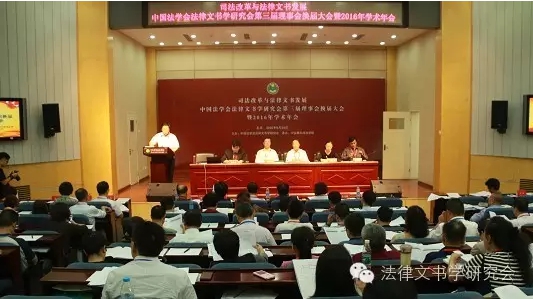 中国法学会法律文书学研究会第二次会员代表大会暨第三届理事会换届大会日前在京召开,马宏俊教授当选研究会新一届会长。本次大会由中国青年政治学院承办。中国法学会张苏军副会长出席年会并发表重要讲话,中国青年政治学院常务副校长王新清代表承办单位致辞,中国法学会法律文书学研究会会长、副会长、常务理事、理事等120余人参加了本次换届大会。