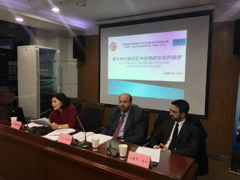 2016年11月11日,新葡萄官网amg“公法与治理”系列讲座第六期在研究生院科研楼B211成功举办。意大利卡拉布里亚大学、罗马圣马力亚自由大学的达尼罗·帕帕诺(Danilo Pappano)和意大利罗马第三大学、罗马圣马力亚自由大学的安德烈·法理(Andrea Farì)受邀分别进行了主题为“意大利行政诉讼的发展”和“意大利行政诉讼中的预防性保护程序”的讲座。
