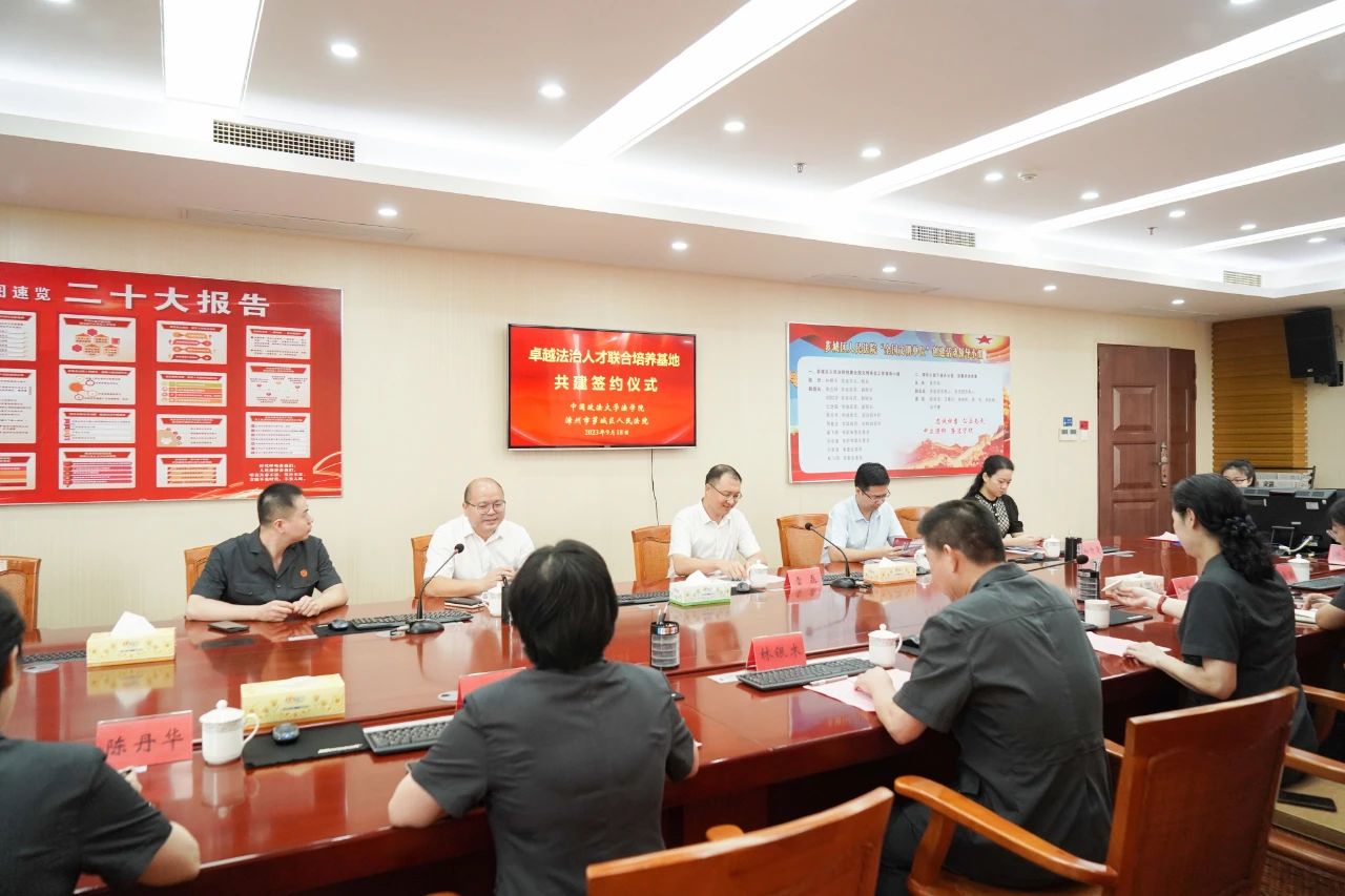 双方举行共建签约仪式暨工作座谈会,研究讨论双方战略合作框架协议签订事宜。双方表示,挂牌成立卓越法治人才联合培养基地,是推动法院审判实务与学生实践教学互促共进的重要载体。今后,双方将增强课题合作,推动课题研究落地,共同促进法学理论研究发展。