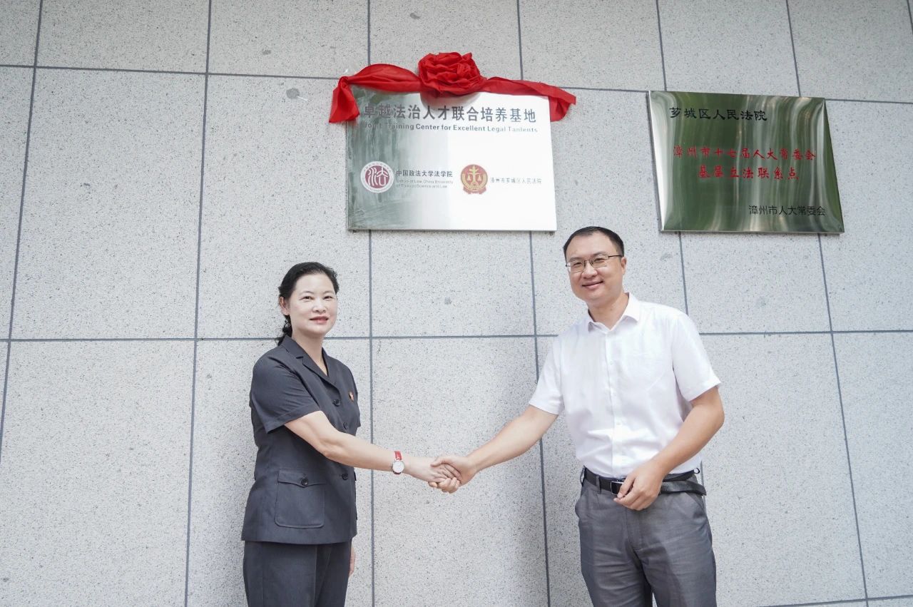 雷磊和陈淑香共同为“卓越法治人才联合培养基地”揭牌。
