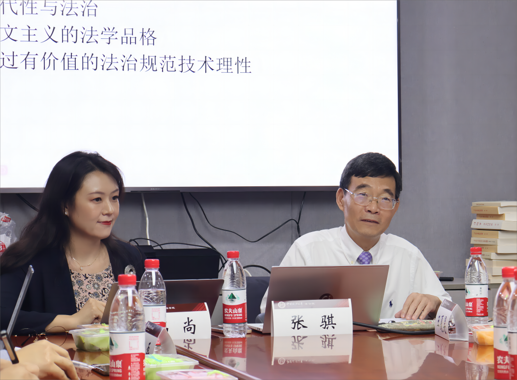 张骐教授在娓娓道来的叙事铺陈中深刻解析了“在技术理性与法治之间-交错时空中的人文主义法学立场”这一主题,张骐教授坚持现代化语境下法学的品格和人文主义立场,指出技术理性无法解决大数据、互联网和人工智能等科学技术在发展过程中对人类社会生活,尤其是对法律问题的诸多挑战。要处理大数据所带来的对人类自由意志与责任判断、对人类主体性存在和对因果循环与悖论等主题的挑战,就必须从包括法治与精神信仰在内的诸种现代性价值中获取思想资源和方法。作为现代性重要组成部分的人类共享价值需要具体化和制度化。他认为法学研究的基本态度应该是,既要在反对唯科学主义的基础上保留科学性的批判精神和求真精神,也要在自省传统文化的基础上弘扬肯定人具有尊严、自由意志和公民性的文明精神,科学性和人文性在根本上是一致的,作为法学研究者,我们应该秉持实现维护人的尊严、改善人的生活的最终目的,共同构筑人文主义法学的立场。张骐教授的讲座引发了热烈的反响和讨论。