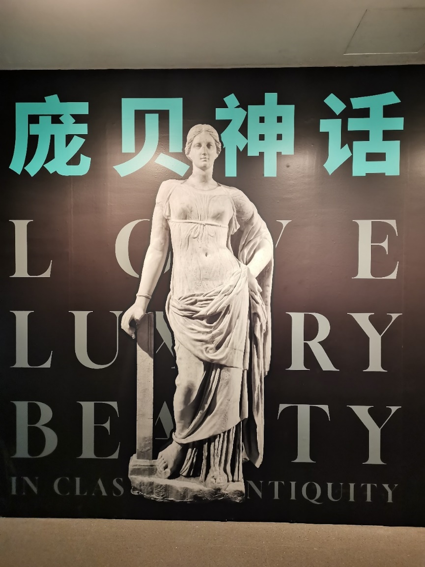 进入第二展厅,这里呈现了数件来自意大利的彩色壁画,生动描绘了庞贝古城人民戴上面具表演戏剧的娱乐场景。借助展厅内陈列的罗马帝国公主的头像,观展者可以窥见罗马统治阶层的奢华生活。在展厅的另一侧,陈列着许多展现平民日常生活的实用器皿,例如铜制灯具、陶罐、玻璃容器、化妆盒等。此外,展厅通过设置半圆剧场、电子屏幕、投影等方式播放罗马帝国的资料片,使观众拥有更加沉浸式的观展体验。