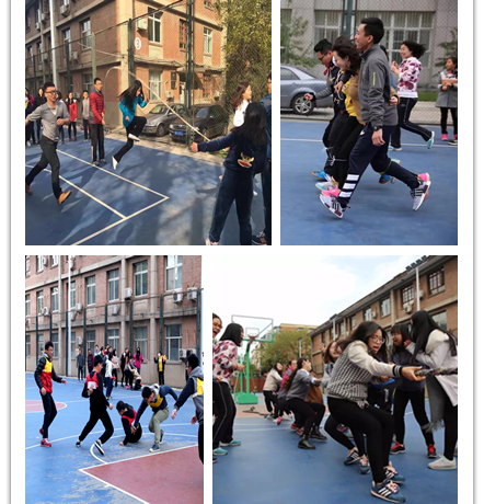 在文体部的精心准备下,本次运动会共设置拔河、五人六足、多人接力跳绳以及撕名牌等几个趣味项目。运动会的第一个项目便是考验力量和团队协作能力的拔河,本项赛事采取班级对决方式,各班级根据具体情况组队,两两对抗,决出冠亚军。裁判一声哨响,两班队员紧握长绳、随着“一二、一二”的节奏一齐用力,每位同学都为班级呐喊助威,加油声、呼喊声响彻校园。最后,15级综合班以绝对优势夺得冠军。比赛进入第二个项目五人六足,同学们同样斗志昂扬,齐心协力向前奔跑,15级宪行一班参赛队员步履轻盈,在大家的一片欢呼声中拔得头筹。接下来是更具协作精神的接力跳绳,大家身手矫健、配合默契,在一分钟限时内,15级宪行二班最终以53个的优异成绩独占鳌头,大家拥抱欢呼,运动会一度达到高潮。运动会的压轴项目是万众期待的撕名牌,红黄两队相互试探、勇猛进攻,比赛进入白热化阶段,经过一番激烈厮杀,15级宪行一班再次夺得冠军。