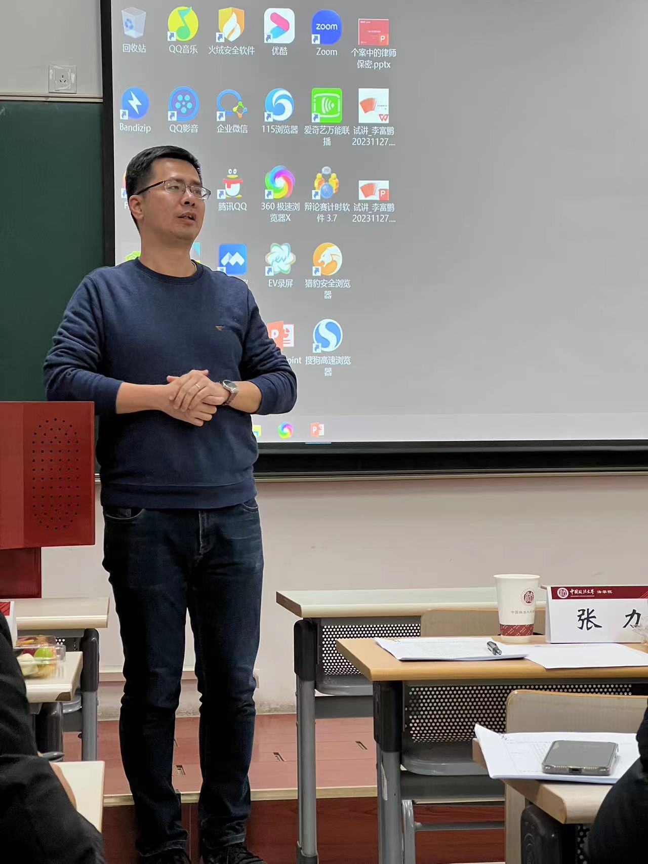 2023年11月27日下午,新葡萄官网amg在昌平校区逸夫楼1024教室举行“青年教师基本功大赛”赛前指导会暨“一起来说课”活动。校工会副主席彭博、新葡萄官网amg副院长张力、来自法律史研究所、法理学研究所、法律职业伦理研究所的多位教师出席本次活动。