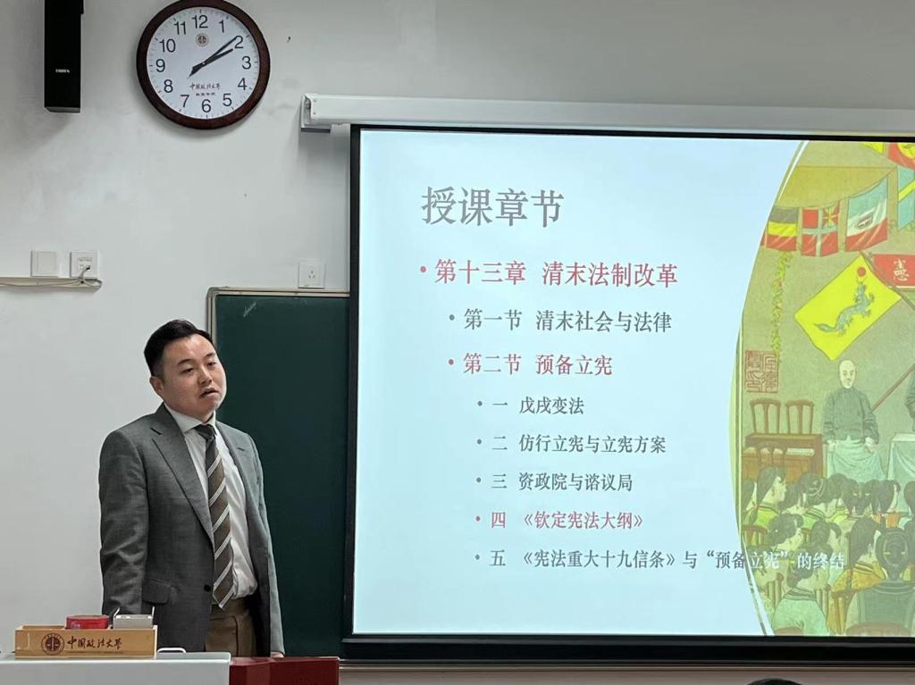 随后活动进行到第一部分,进行“青年教师基本功大赛”赛前指导。法律史研究所的李富鹏老师和法律职业伦理研究所白冰老师依次进行了现场教学演示,展现了新葡萄官网amg青年教师扎实的理论功底和良好的教学能力。