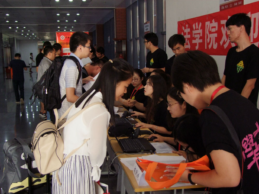 9月5日上午8时,新葡萄官网amg2016级研究生秋季开学迎新工作在学院路校区综合科研楼B厅南侧有序进行。新葡萄官网amg研究生会成员们一张张热情的笑脸,一句句亲切的问候,一项项贴心的服务,欢迎着前来报道的莘莘学子。法学院研工办主任陈维厚,研究生工作办公室王萍、王家启等几位老师亲临现场指导迎新活动。迎新工作如火如荼进行,到处都是忙碌的身影。院研究生会师兄师姐们热情周到的服务成为此次迎新活动最好的明信片。