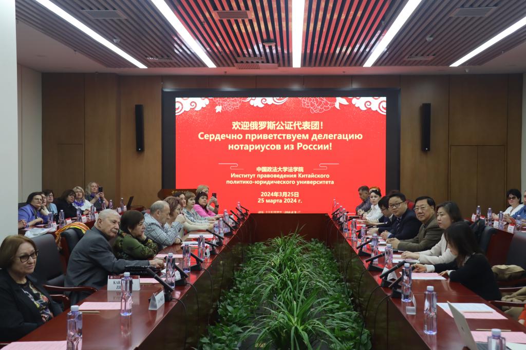 随后,双方就上述讲解内容进行了圆桌讨论研讨。俄罗斯公证代表团参会人员就我国公证制度提出以下问题:公证材料如何证实、档案如何存档、质证依据、公证员资质期限、无民事行为能力人及限制民事行为能力人的公证效力、公证员数量、电子证据如何证实等问题,中方参会人员对此一一进行解答。我院参会人员对俄罗斯公证机构的市场化问题进行提问,俄方参会人员积极解答。