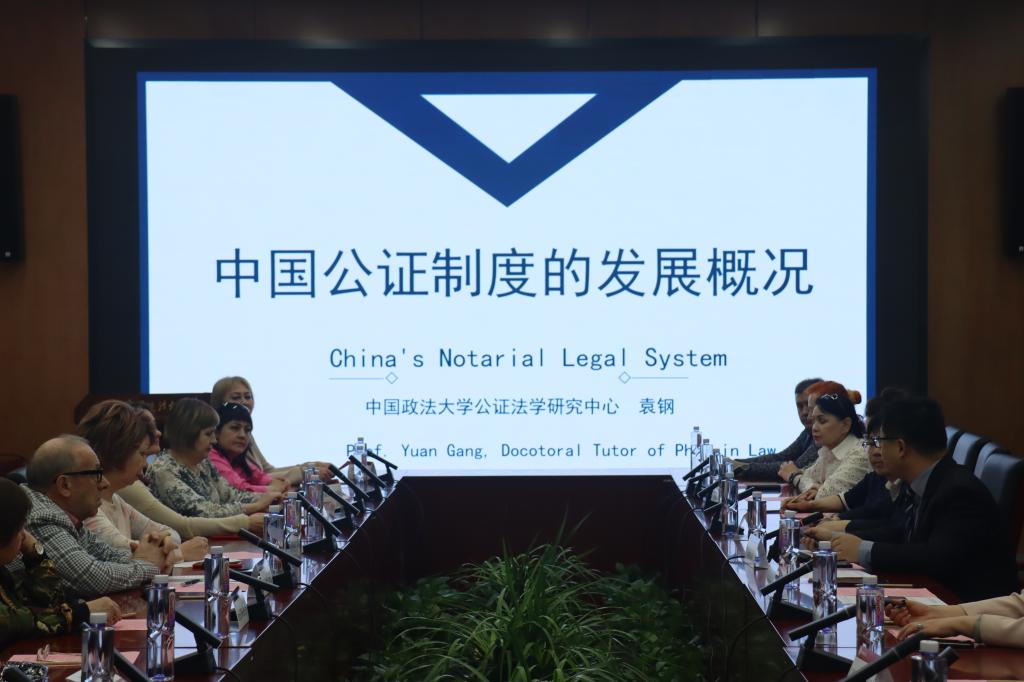 在相互介绍双方参会人员之后,袁钢教授对我国公证制度的发展概况进行了详细讲解。具体内容包括:我国公证制度概论及发展、公证活动的基本原则、公证的管理体制、公证机构、公证员、公证程序以及公证法律效力。