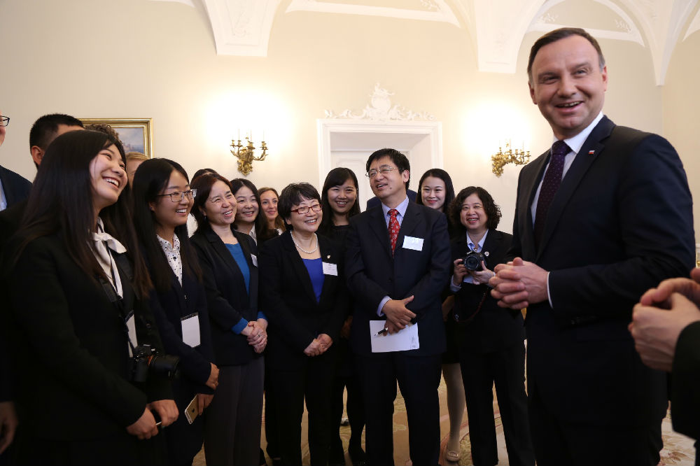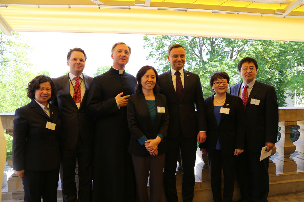 中午,中波师生一行集体前往总统府,在参观了总统府后,受到了总统及其团队的热情招待。在新葡萄官网amg副校长高浣月、新葡萄官网amg院长薛刚凌、新葡萄官网amg副院长许身健、新葡萄官网amg教授程韬与波兰总统进行友好交流后,波兰总统接受现场提问,会场气氛轻松愉快。随后波兰总统与中波新葡萄官网amg师生握手合影,表达了对中波友谊长存的美好祝福。