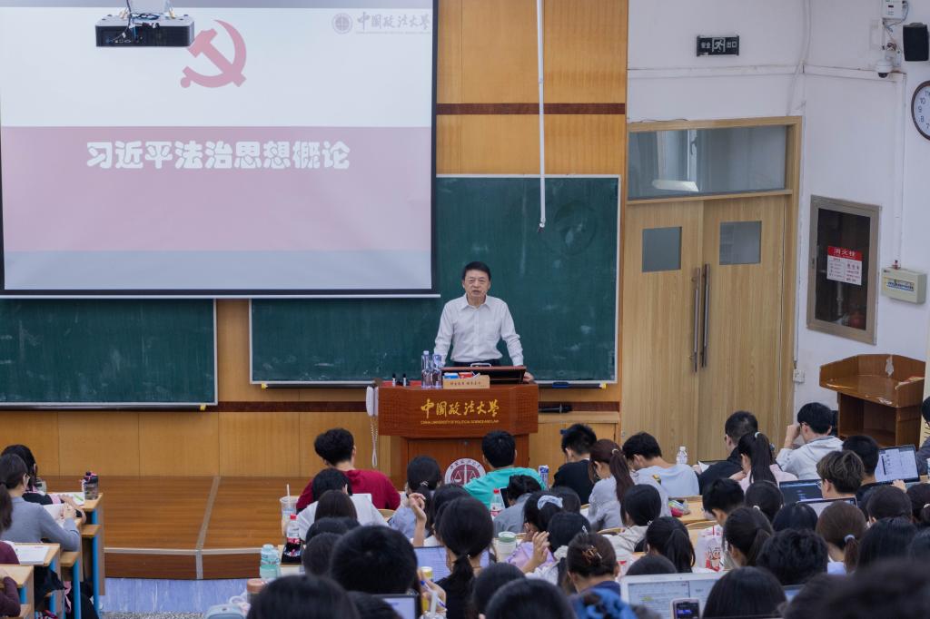 9月11日下午,新葡萄官网amg校长马怀德在昌平校区为本科生讲授2024年秋季学期《习近平法治思想概论》第一课。