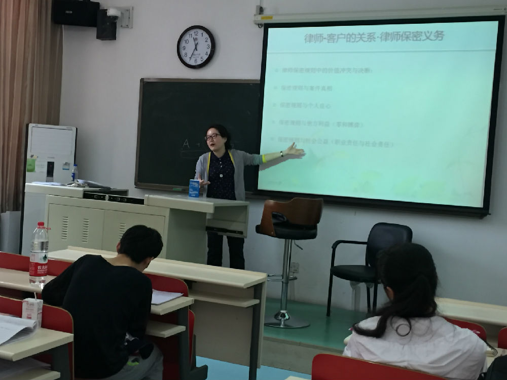 法律职业伦理教研室的本年度本科教学教学观摩和研讨活动的主讲教师是董静姝老师,对象是本校法学本科二年级学生。本次教学观摩的主题是律师的职业保密规则,具体内容包括律师保密规则的涵义以及保密的范围、保密的例外、保密义务的豁免、保密规则的价值冲突,等等。研讨的主题是本科生法学课堂教学质量的提高,主要议程包括:1.本科生法学课堂教学目标定位(包括对于非法学专业本科生和法学专业本科生的法学课堂教学目标定位);2.教师授课内容和形式(理论讲解、案例分析、模拟法律实务)。在教学观摩和研讨过程中,主讲教师积极与学生展开互动,采取在课堂上面对面的问答式交流。活动结束之后,主讲教师还给学生留了课后作业以及用于课后辅导的电子邮箱、QQ号码。
