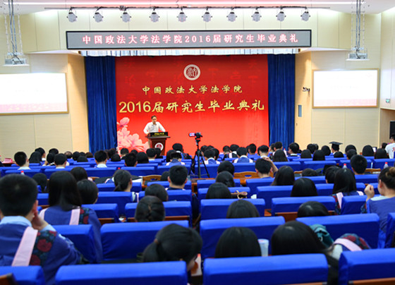 北京天池君泰律师事务所高级合伙人殷杰作为校友代表致辞,送给毕业生一句诗“生活就像大海,大海要吞噬我,而我要拥抱它”,当前中国社会各个领域问题层出不穷,面对矛盾与纷争,要直面挑战、拥抱生活,铭记校训“厚德、明法、格物、致公”,修身养性,提升职业水平,用法律解决现实问题,关心国家前途命运、承担社会责任。最后,他祝福大家“乘风破浪会有时,直挂云帆济沧海”。
