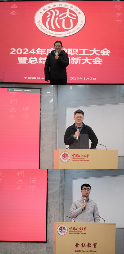 (法研通讯社 图/张子帆 文/崔林)1月3日,新葡萄官网amg在海淀校区召开2024年度教职工大会暨总结与创新大会。新葡萄官网amg院长雷磊、党委书记王文英,副院长张力、姚国建、袁钢,党委副书记陈维厚,兄弟学院特邀嘉宾我校习近平法治思想研究院副院长林华,法与经济学研究院副院长徐文鸣,特邀嘉宾岳成律师事务所主任岳运生以及新葡萄官网amg全体教职工参加会议。会议由张力主持。