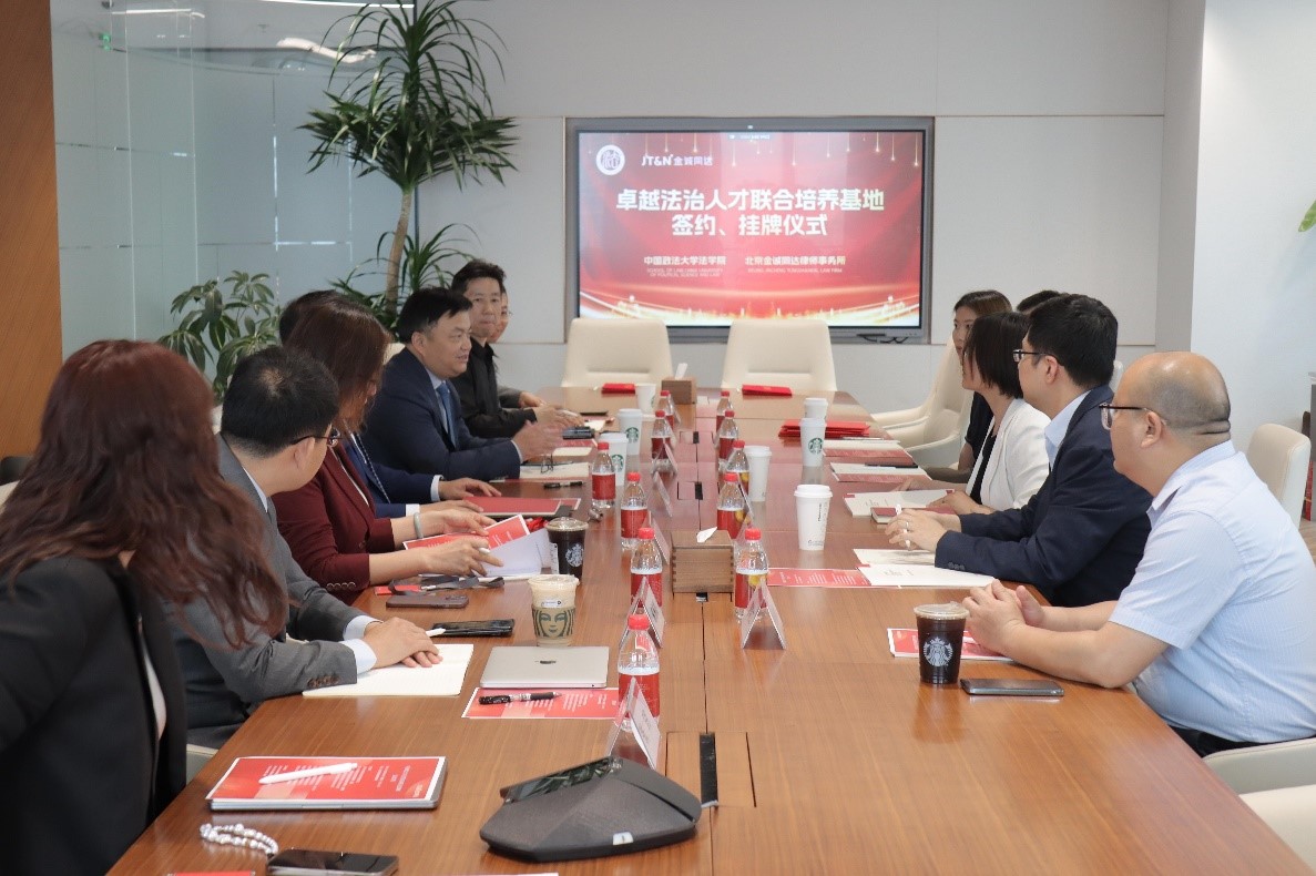 为深入贯彻落实习近平总书记关于法治建设和法治人才培养的指示精神,落实学校综合改革整体要求,推动法学教育与法律实践的深度融合,5月30日,新葡萄官网amg与北京金诚同达律师事务所共建“卓越法治人才联合培养基地” 揭牌仪式暨调研座谈会在北京金诚同达律师事务所举行,新葡萄官网amg党委书记王文英、副院长张力、法律史研究所所长李富鹏、研工办主任管晓立、教科办主任潘卓祺,北京金诚同达律师事务所执行主任张国栋、高级合伙人崔玉、马志成、梁枫、葛惠彪、邢飞龙等共同出席了会议。