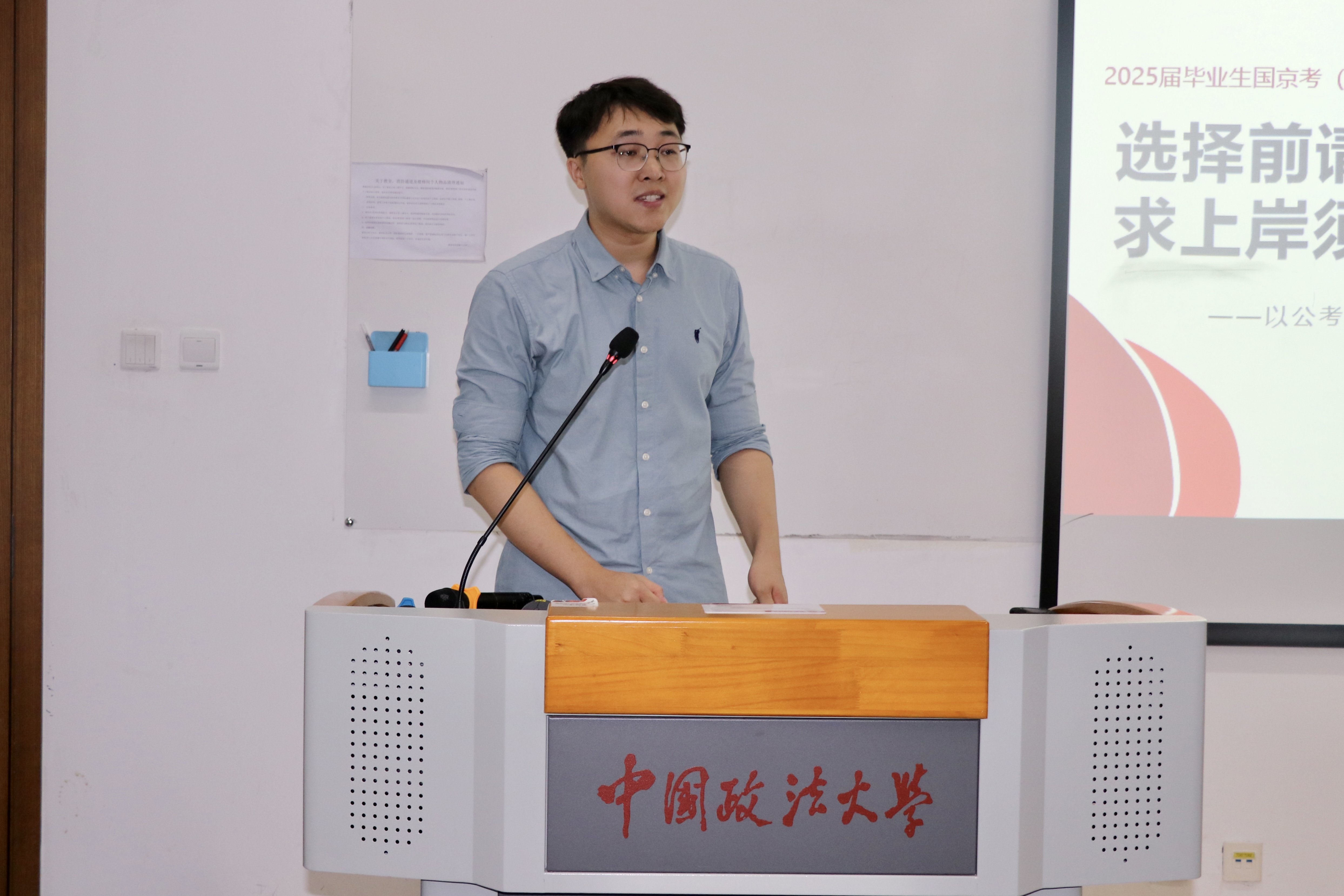 姚清寻师兄的分享以围绕“选择前请知己知彼,求上岸需以一当十”为主题,为在校生提供了极具针对性的备考指导。首先要“知彼”明方向,师兄系统梳理了国考、北京选调、北京市考及外省市选调、市考等路径的核心特点、优劣势及关键时间节点,强调选择需结合招录特点与个人发展。其次要“知己”定选择,师兄提出选岗需基于个人追求、发展空间和现实条件综合判断。最后做到“执行”求实效,提出备考需科学规划、分阶段突破,并掌握行测、申论及面试的实战技巧。心态上要专注执行,同时做好时间管理与身心调节。