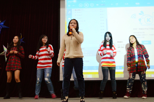 颁奖过后联谊节目正式登场,每个部门都为大家带来了各自精心准备的精彩节目。艺林工作室的开场舞活泼可爱,与同学们互动融洽,活跃了全场的气氛。实践部的小品《你的月亮我的心》引得大家频频大笑,男女生斗舞环节更是笑点多多,让大家看到了实践人严谨踏实的另一面。秘书处俊男靓女们的劲歌辣舞令人眼前一亮,让现场观众感受到青春的朝气与活力。倾听栏目组的歌舞剧《圣诞礼物》既清新又火辣,为大家送来了温暖的节日祝福。学生就业与发展中心带给大家的舞台剧讲述了理科生在恋爱中的囧事,幽默诙谐,令人忍俊不禁。办公室除了为大家献上精彩纷呈的小品外,还以一首动听的《相亲相爱的一家人》让大家感受到了学生会家一样的温暖。学术部的《学术大本营》则向大家展示了学术人精湛的演技和别出心裁的创意。一向以能说会道著称的外联部在歌舞剧中展现了同样非凡的舞技,富有创意的表演形式逗乐了全场观众。森林宣传中心带来的歌舞剧《失恋阵线联盟》舞美歌甜、道具齐全,再次引爆了全场。压轴出场的体委会带来的是爆笑喜剧,把晚会推向了最后的高潮也让大家看到了体委会的热情与活力。