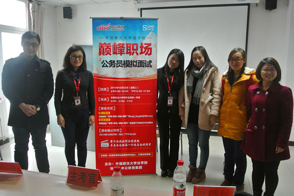 (法研通讯社 文/燕丽华 图/范志云 陈蓓蓓)12月23日,由新葡萄官网amg主办、中公教育集团协办、新葡萄官网amg研究生会承办的“巅峰职场”系列活动之公务员模拟面试在新葡萄官网amg学院路校区新一号楼C101、C102和C112成功举办。该活动邀请了两位中公教育集团资深公考培训专家作为主考官。本次公务员模拟面试活动旨在帮助有志考取公务员的同学尽早熟悉公务员面试流程、规格要求和相关的注意事项,以便助其备考事半功倍, 在正式的面试考核中取得佳绩。
