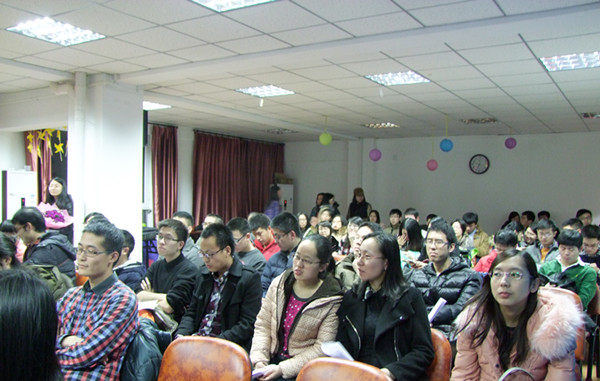 在一轮幸运观众抽奖之后,新葡萄官网amg研究生会宣传部的姑娘们给大家带来了充满活力的韩国舞蹈《Bar Bar Bar》,掀起了晚会的又一次高潮。最为精彩的是由聒噪社众多老师演出的精彩节目,有昆曲《牡丹亭》选段《步步娇》,诗朗诵《年轻》、《我为什么活着》和《我希望》,尤其是田瑶老师一首《吐鲁番的葡萄熟了》赢得了学生的阵阵掌声。