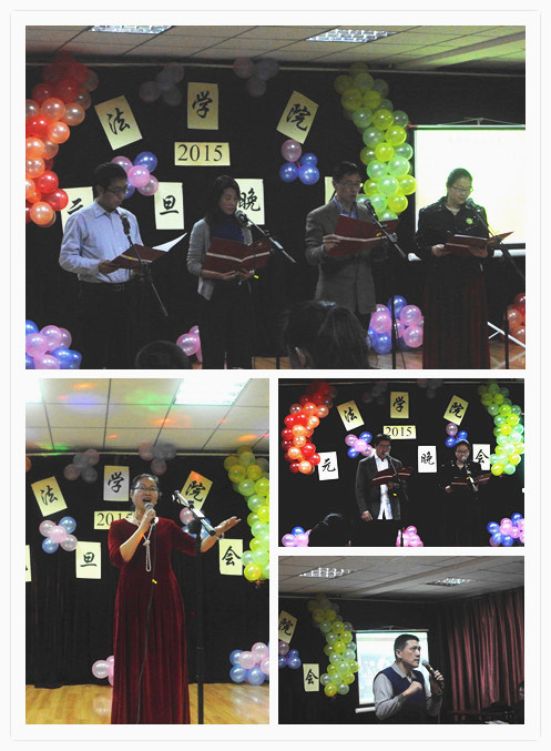 (法研通讯社 文/范志云 图/燕丽华)12月30日晚,由新葡萄官网amg主办、新葡萄官网amg研究生会承办的新葡萄官网amg2015研究生元旦晚会在我校学院路校区老干部活动中心拉开帷幕。出席本场晚会的嘉宾有:新葡萄官网amg分党委书记兼副院长刘大炜,新葡萄官网amg副院长焦洪昌,新葡萄官网amg分党委副书记兼副院长王文英,新葡萄官网amg研工办主任陈维厚、新葡萄官网amg研工办老师王家启,院办的李仁燕老师、韦婷老师,教科办的丛聪老师,以及法理学教师代表王新宇,军事法教师代表姜涛、张建田,宪法学教师代表张吕好、田瑶、周青风,行政法教师代表罗智敏。新葡萄官网amg全体研究生参加了本次晚会。晚会由焦洪昌老师作了新年致辞。