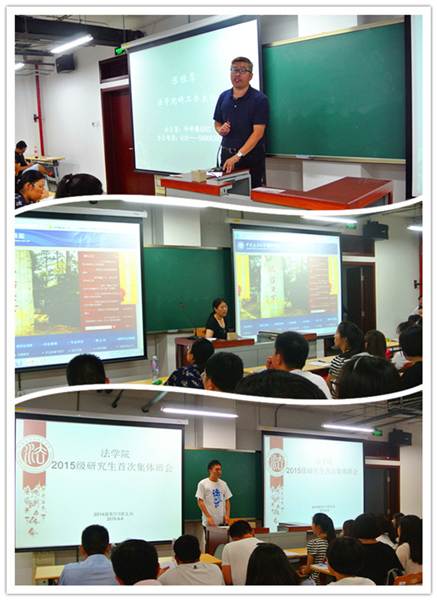 (法研通讯社 文/燕丽华 图/燕丽华)伴随着新生报到工作的结束,为使新生尽快步入研究生生活,9月8日晚,我院2015级全体新生首次班会在学院路校区综合科研楼地下202教室成功召开。新葡萄官网amg研工办主任陈维厚、研工办老师王萍、王家启出席了本次班会。