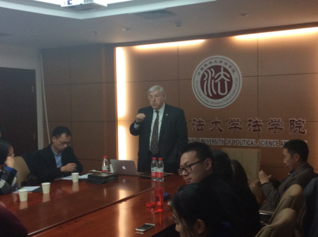 2015年11月23日18:30,应我校新葡萄官网amg宪法研究所的邀请,美国华盛顿特区前联邦法院法官范伯候(Hon. Rollin A. Van Broekhoven)在科研楼A913会议室主讲了宪法论坛——全球化时代的道德、法律与公正。本次论坛由新葡萄官网amg宪法研究所李松锋博士主持,新葡萄官网amg宪法研究所张吕好教授、中欧新葡萄官网amg齐红教授和本校研究生以及多位慕名而来的校外人士参与了此次论坛。