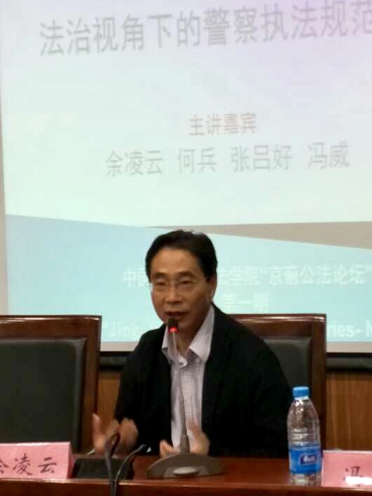 论坛第二部分报告环节。首先由余凌云教授进行发言,余教授认为实现执法规范化是推进法治公安建设最重要的抓手。其重点在于裁量权的构建,具体的操作方法主要包括三个方面:1.树立问题导向意识,深入研究常用条款在实践中出现的问题;2.利用视频等图像化的宣传方式进行宣传;3.将内在驱动转换成外在驱动,将执法决定文书公开,以实现实务中遵循先例。