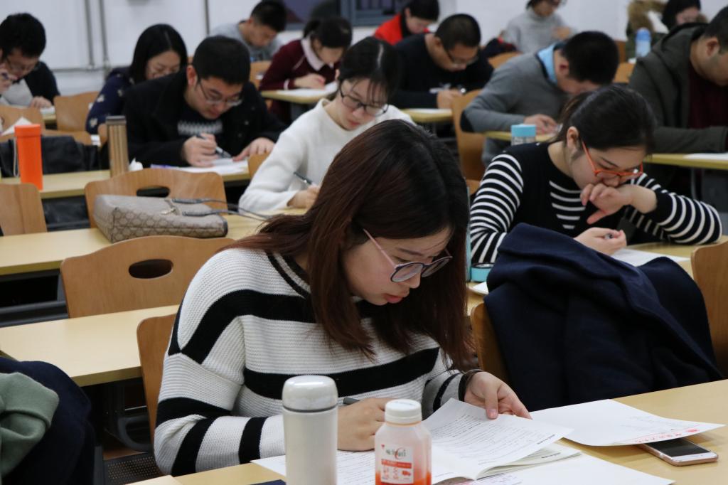 本次活动分为两个阶段,第一阶段为国家公务员考试模拟笔试,分为“行政职业能力测试”和“申论”;第二阶段于11月18日下午由中公教育备考专家进行现场详细讲评,给同学们指点迷津。本次模拟考试的题型、考试环境、考试时间和流程安排都严格按照国家公务员考试大纲标准,考试吸引了研究生院的众多同学报名参加。模拟考试当天,科研楼地下103教室座无虚席。开考前,同学们有序进入考场,并谨慎作答,整场考试在严肃紧张的气氛中进行。